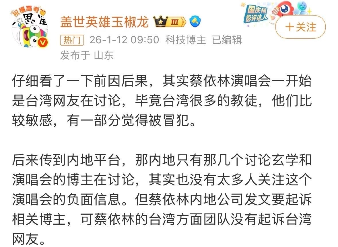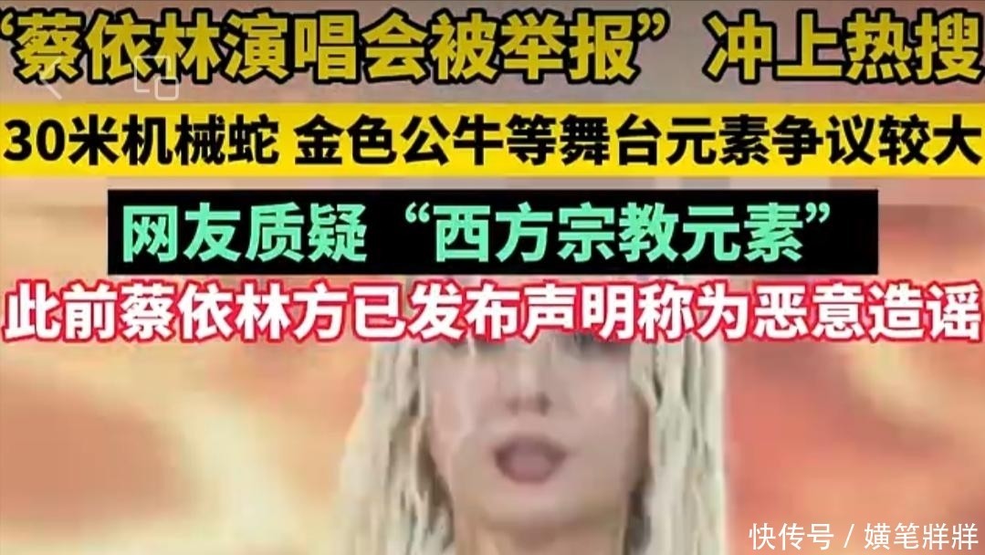 诸如“蔡依林演唱会被实名举报”“蔡依林借仪式运筹”“蔡依林举行献祭典礼”等话题接连涌现。