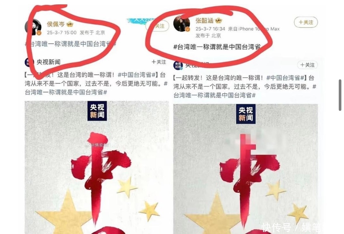 侯佩岑、欧阳娜娜等台湾籍艺人第一时间转发响应,立场清晰明确。
